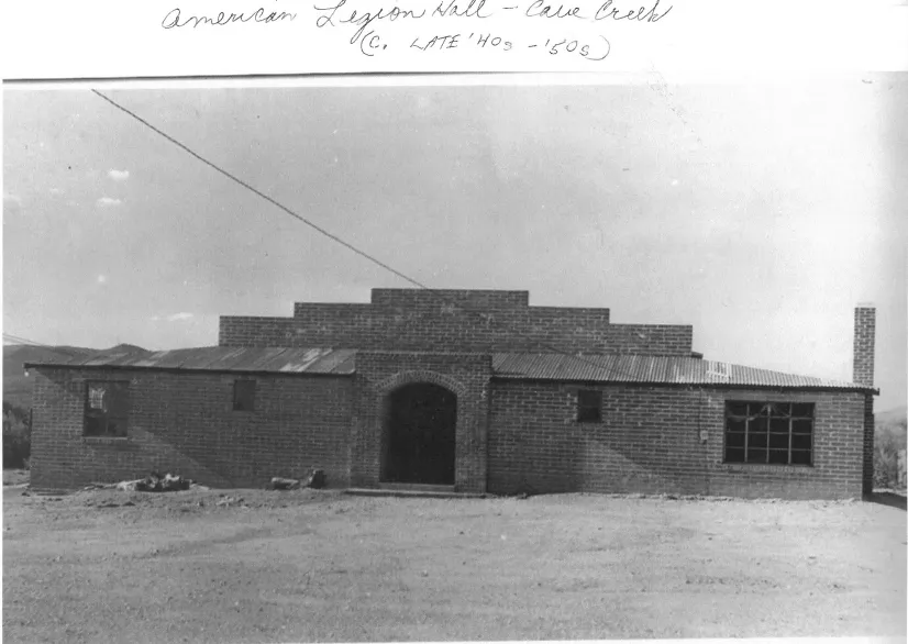 April 9,1946, ground was broken for Post 34’s American Legion Cavecreek Clubhouse. After the floor was poured, American Legion Post 34 held its opening dance on the new floor May 4. Dances, barbeques, fundraisers, and patriotic and other community events continued to be held on the floor until actual construction on the building commenced in late December 1946. When the building was completed in Spring 1947, a big celebration was held for the entire community.